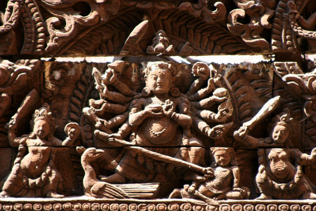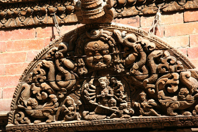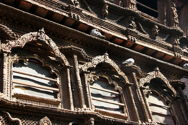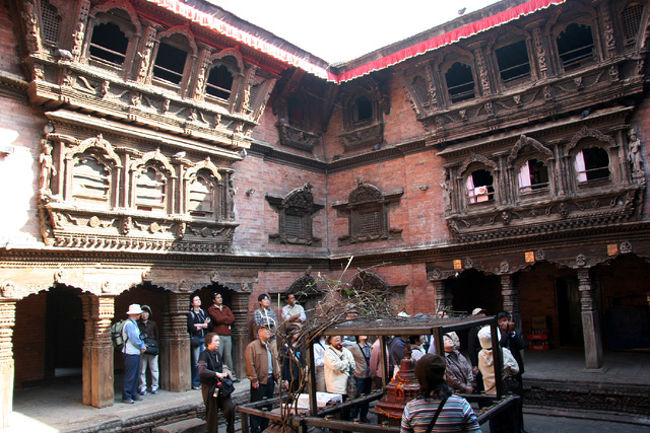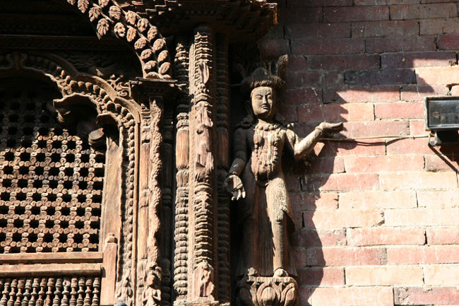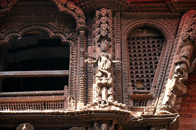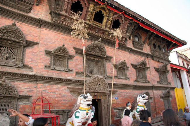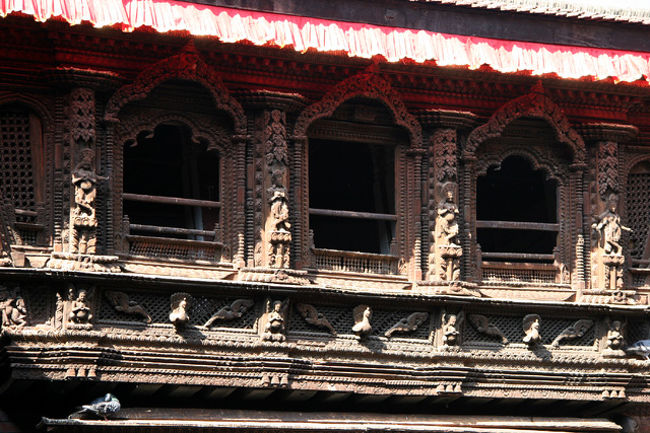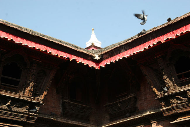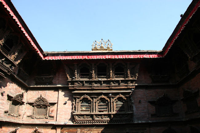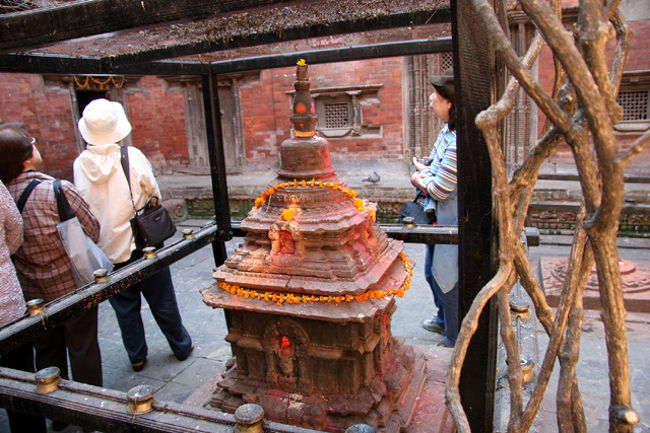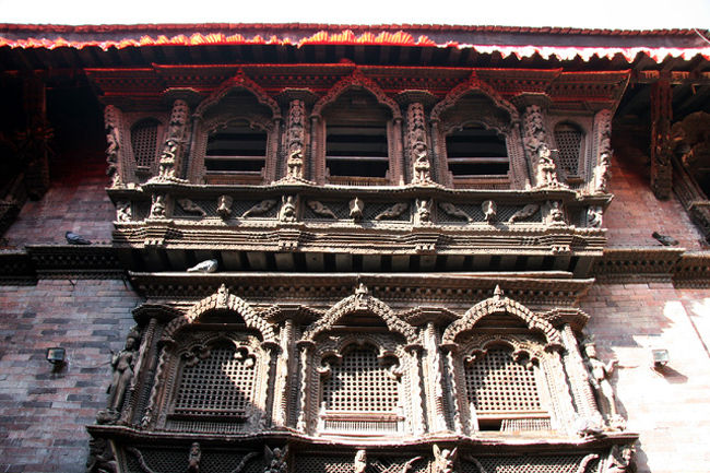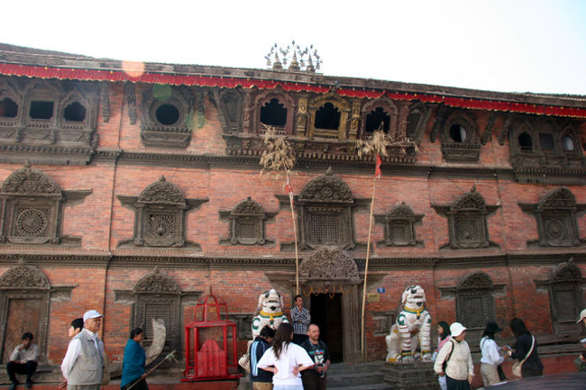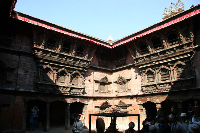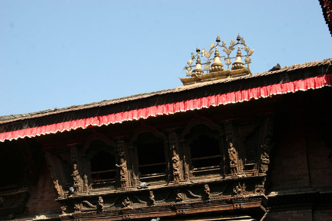 タルバール広場の南側にクマリの館がある。生き女神クマリはネパールの守護神タレジュ女神の化身とされて崇められている。クマリは家柄がよい、意志が強く、自立心があって、聖性があり・・など32項目の条件に叶った幼女が選ばれ、親元を離れこのクマリの館で生活する。初潮を迎え聖性が失われたら次のクマリに交替する。学校にも行かず、年に数度のお祭りの時以外は外にも出ない。毎年9月のインドラジャトラ大祭では3日間市内を練り歩く。この館を訪れた時幸運にもクマリに会うことが出来た。理知的でとても美しかった!