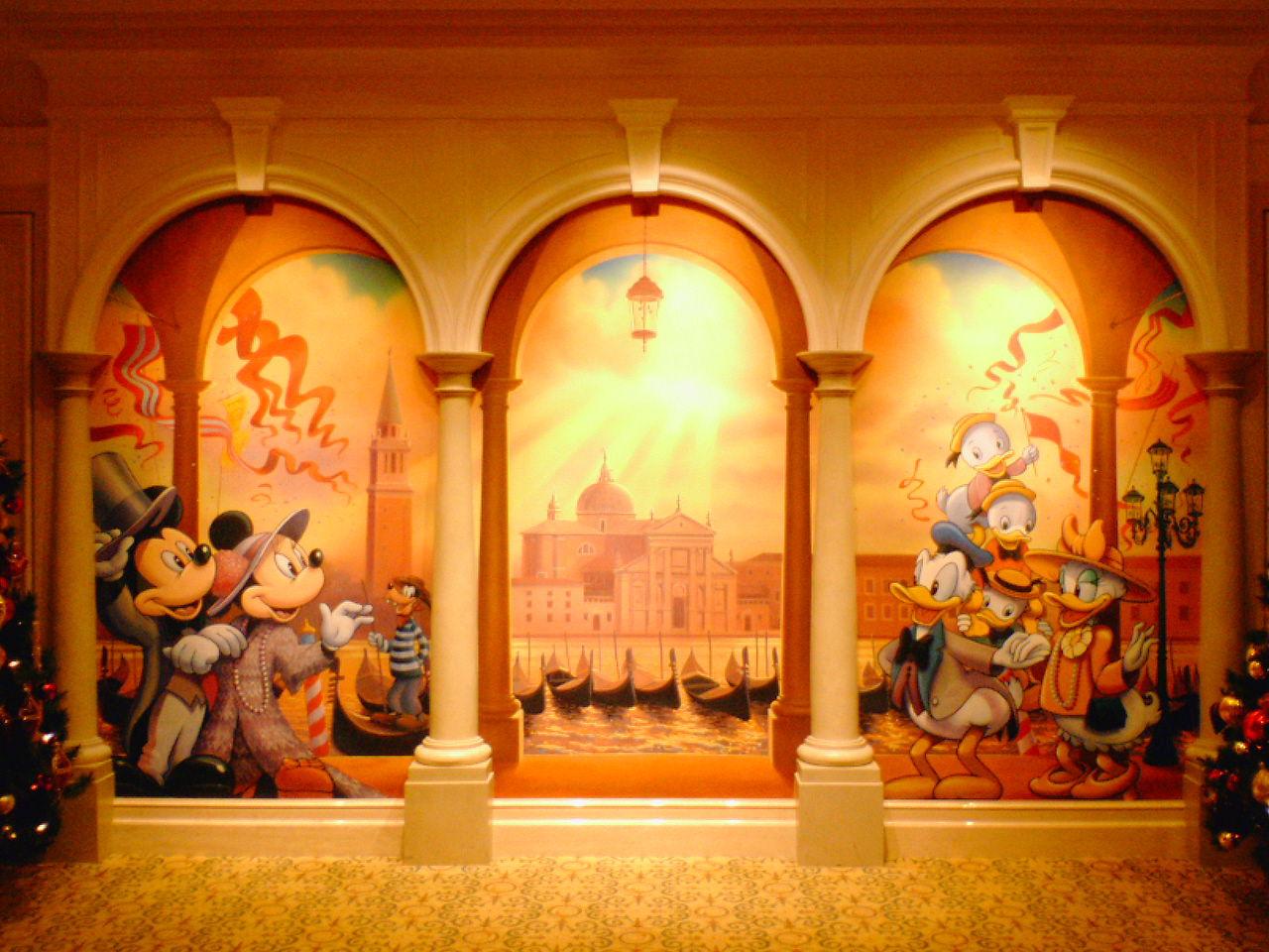 入り口の横には、ミッキーとミニーが可愛くお迎え、、