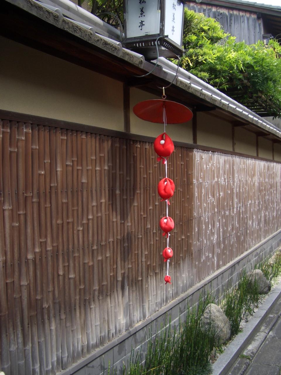 お猿のお守りを5個繋げて軒先にぶら下げてあります。猿が5個で”ご縁”があるんだって。