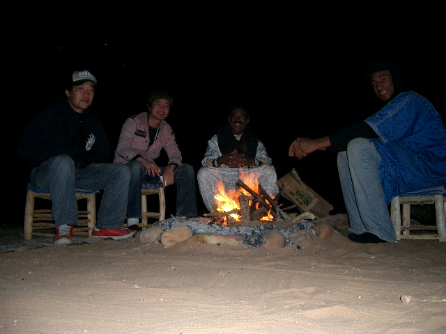 ラクダに乗っての散歩も終わり、砂漠の夜を迎える。ムクタの息子と少年が太鼓を叩きながら歌ってくれた。どの様な内容の歌なのかは分らないが、静かな砂漠の夜に響き渡る。
