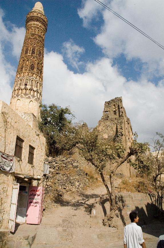 二つのミナレットがあって、ひとつは当時の建築(白い)だが、ひとつはここ25年の再建だそうです。 -