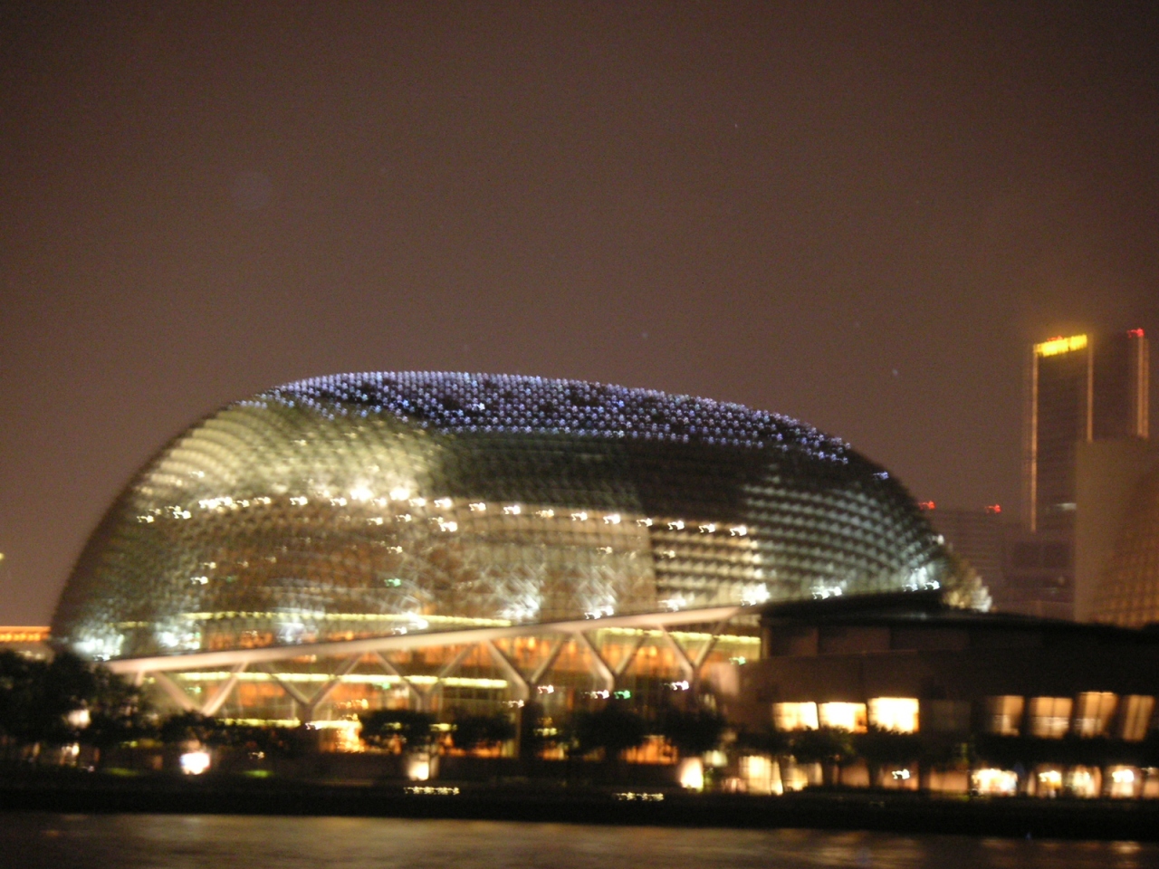 マーライオン前の川を挟んだ所に見える、ドリアンをイメージした建物。正式名称は”エスプラネード・シアターズ・オン・ザ・ベイ”というらしいが、ドリアンでいいじゃない? -