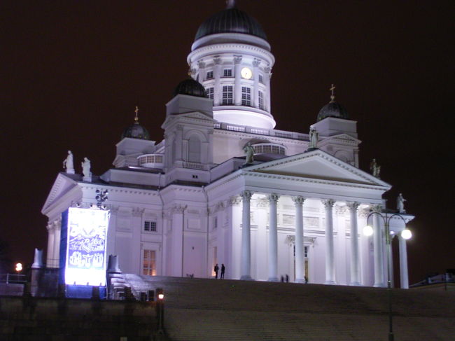 この日は雪が降る中観光。写真はヘルシンキの見所、ヘルシンキ大聖堂です。