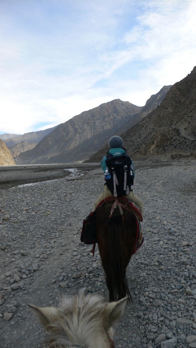 ジョムソンへ着くと、早速ガイドが馬の調達に行った。いよいよホーストッレッキングの始まりだ。一日目はカリガンダキ川沿いをムスタン王国の入り口であるカグベニを目指す。