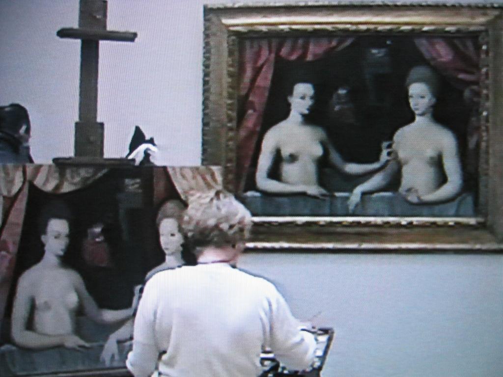 「ガブリエル・デストレー姉妹」の前でも!この絵はトリックアートで見たことがあるような気がしました。