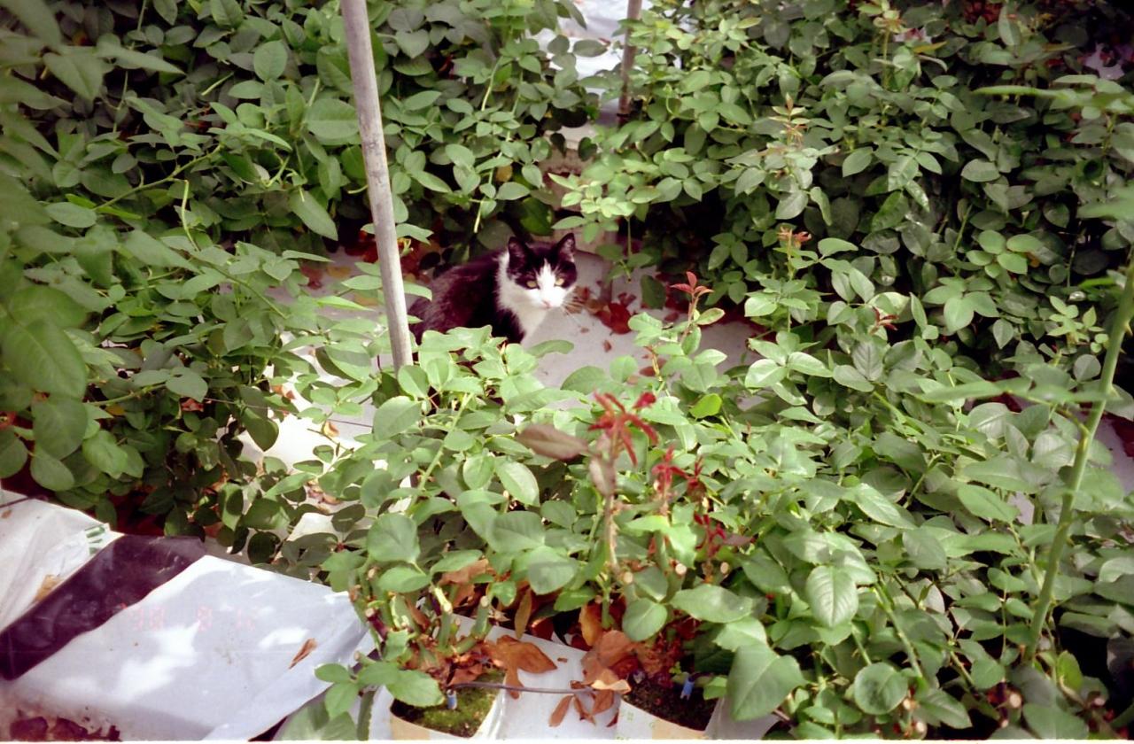 で,何故かバラの温室の中に猫ちゃんが.何をしているんでしょうか?とげが当たって痛いと思うんですが,ねずみ取りでもしているのかな??