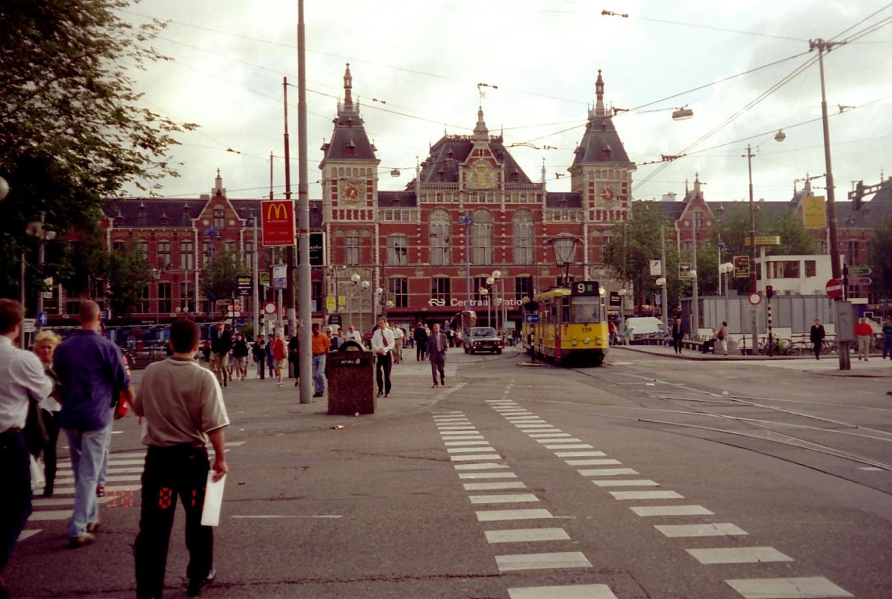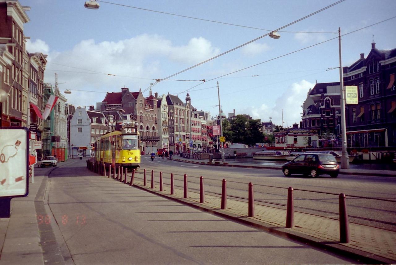 アムステルダムの街中を走る路面電車.