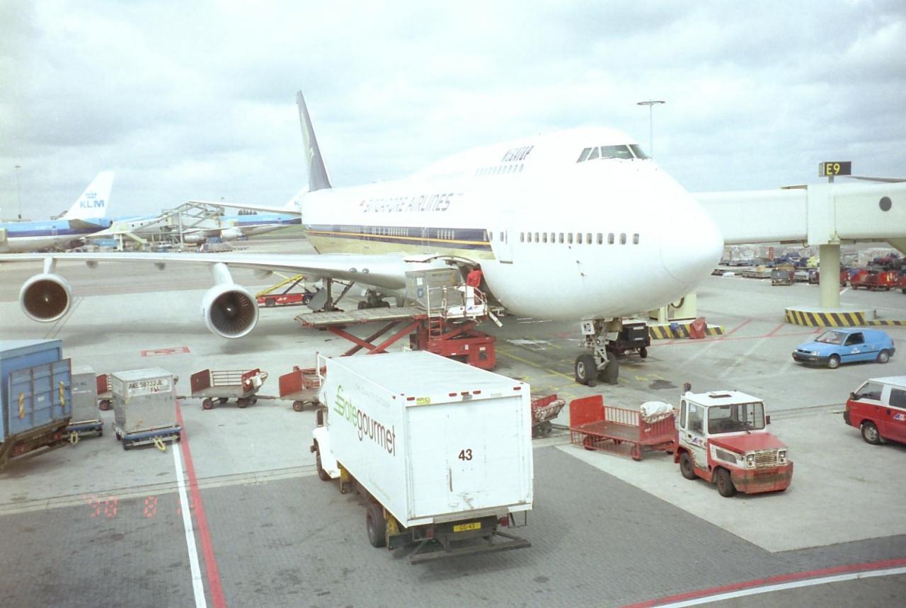 SQシンガポール航空のジャンボジェットです.実はお金がなかったので,南回りで帰りました.飛行機の乗り心地はともかく,遠かったな〜.