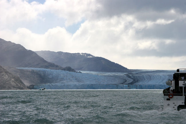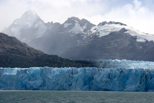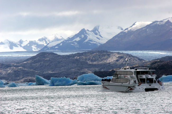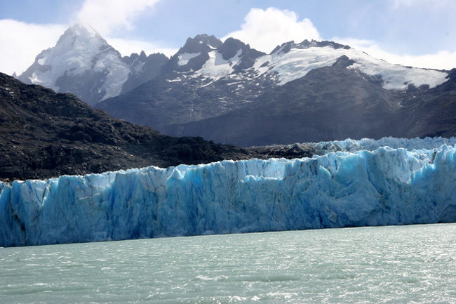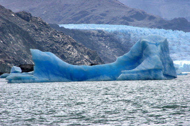 このウプサラ氷河は南米最長の60kmを誇る!最大の氷河である。先端部の幅は5-7km、高さは80-100mである。正面から氷河を見ると黒い筋が入っているがこれは氷河によって削り取られた岩石だそうだ。このウプサラ水道には沢山の氷山が浮いている。クルーズ船の操舵も慎重だ!この氷河が有名なもう一つは、1953年に今まで生物の存在は不能と考えられていた氷点下の氷の上で「氷河虫」が発見されたことだそうだ。此処に浮かぶ氷山のグレーシャブルーは特に美しかった!
