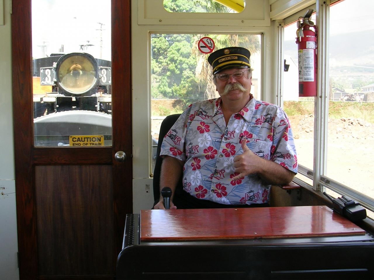 サトウキビ列車の車掌さん、テリーおじぃです。