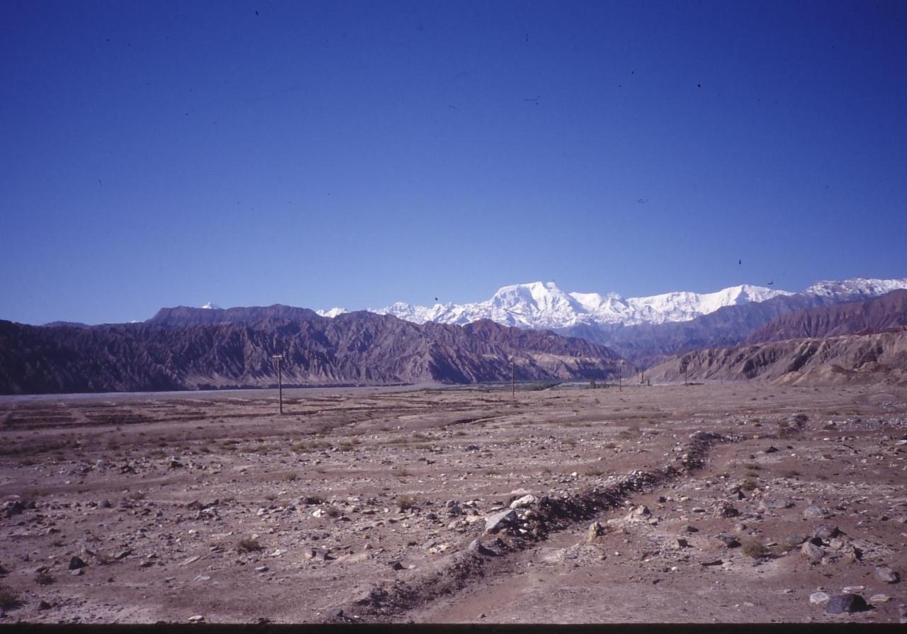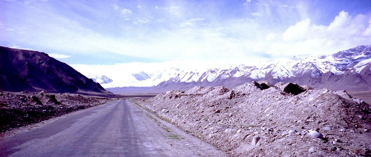 カシュガルからタシュクリガンへ向かう途中に見たカラコルム山脈です.