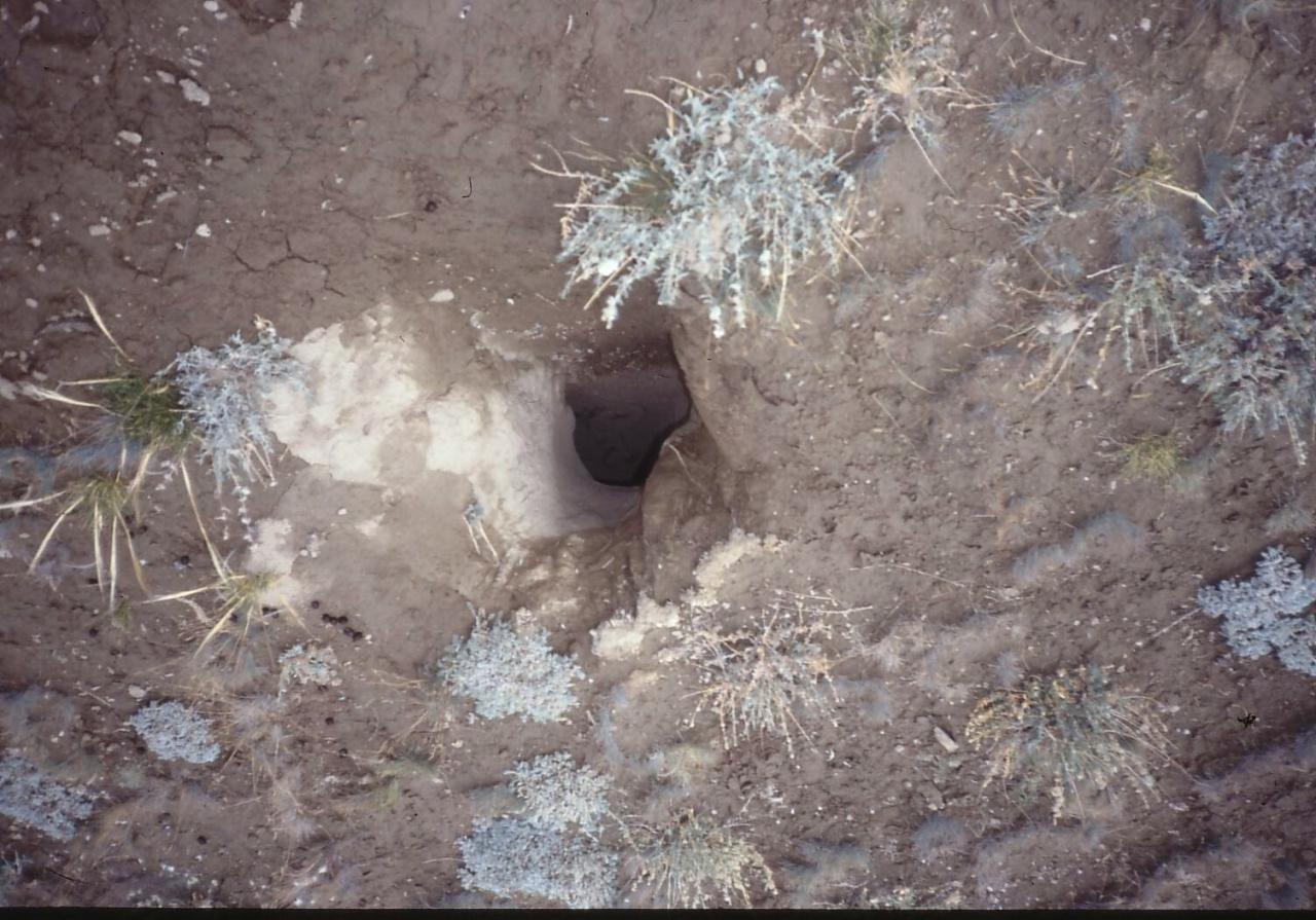 プレーリードッグ君の巣穴です.この穴の住人は,カメラを向けたとたん巣穴に逃げ込みました.