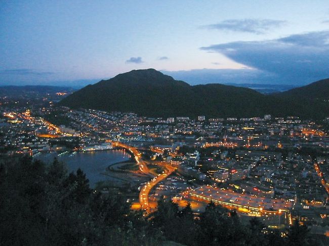 ベルゲンの町並みを見渡せる展望台から見た夜景。