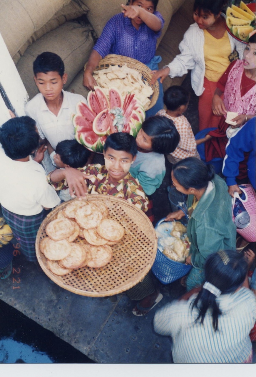 マンダレーからバガンへ行くスローボートに乗った。1階がローカル、2階が外国人用のキャビン。船は何気ない日常を乗せて、イラワジ川をゆっくりと下っていく。
