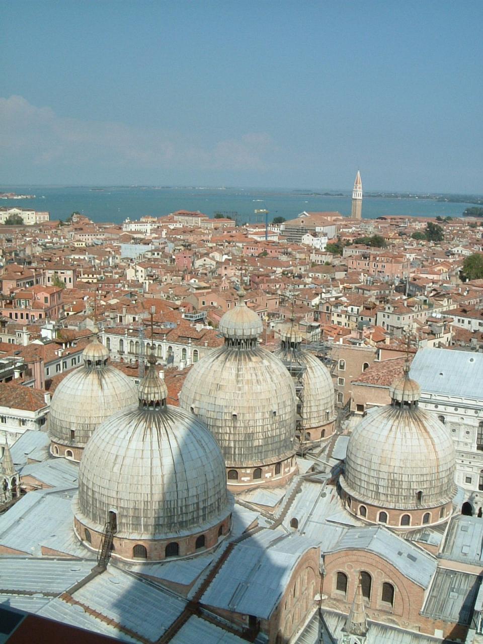 大鐘楼の上からのベネチアの町並み。屋根の色が統一されていて綺麗です。