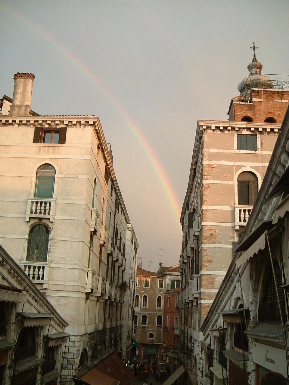 リアルト橋のあたりを散策中に虹が出てきました。町並みが綺麗なので虹が絵になる感じ。