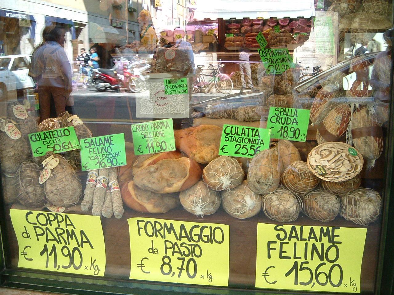パルマ名産の生ハムとチーズのお店。