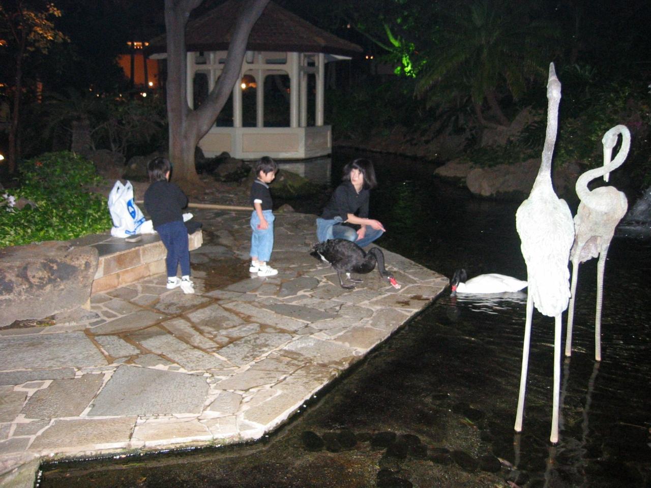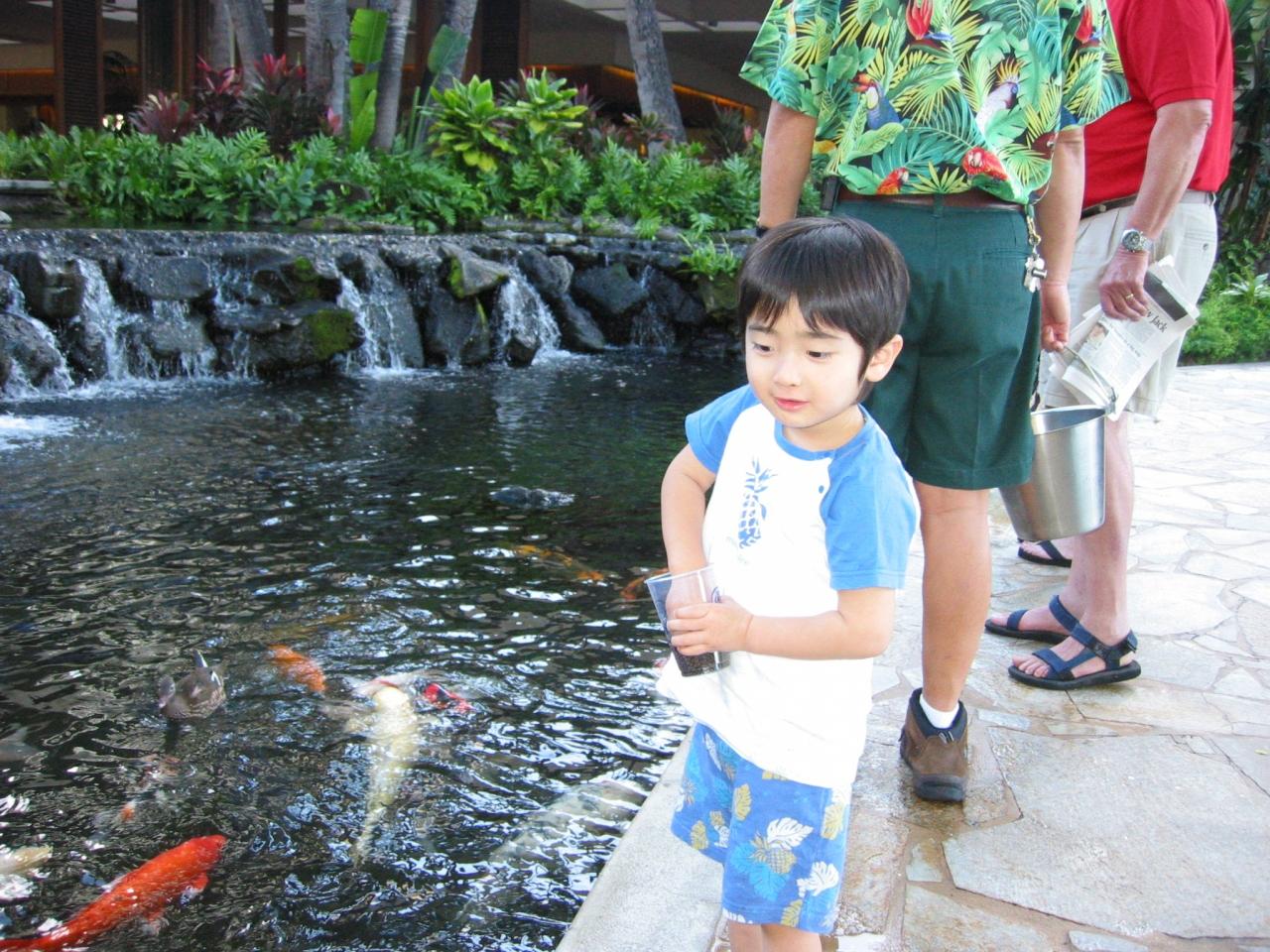 朝、早起きして魚にエサをアゲテネ。(ヒルトン・ハワイアン・ビレッジ)