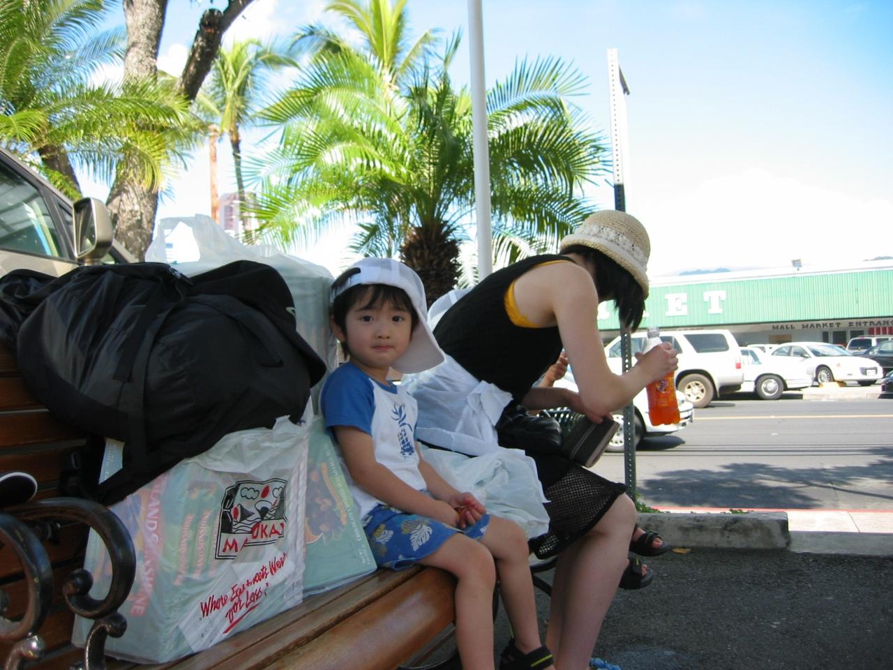 トロリ−バスが来るまで。(ハワイを演出しているのは、この人達なのかも?)