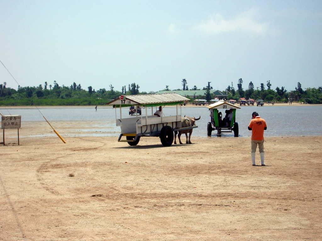 油布島への水牛車乗り場にて記念撮影用の看板の前です。(1枚千円くらい)