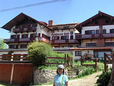 今日はラ・クンブレシータというドイツ風の田舎町まで行くツアーに行ってきました。アルゼンチンでなぜドイツ風かというと、第二次大戦後ナチスドイツの残党が追っ手を逃れて隠れ住んでいたということで、建物以前に景観がとてもドイツ風なのに感心しました。今ではドイツを売りにした観光地と化していました。写真は所謂ラ・クンブレシータ・ホテル前で撮った1枚です。ドイツかアルプスの山小屋を思わせるファサードになっています。