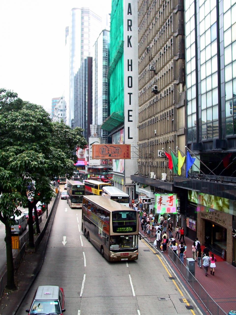 左のバスは、香港の公共路線バス。