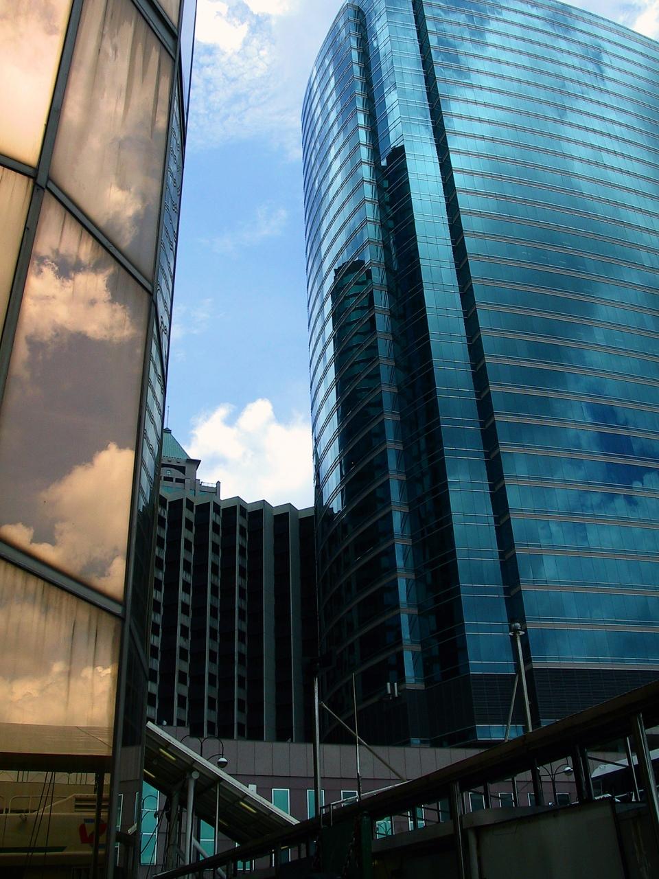 上を見上げると、大きなビルに明るい日差しが注ぎ込まれている。