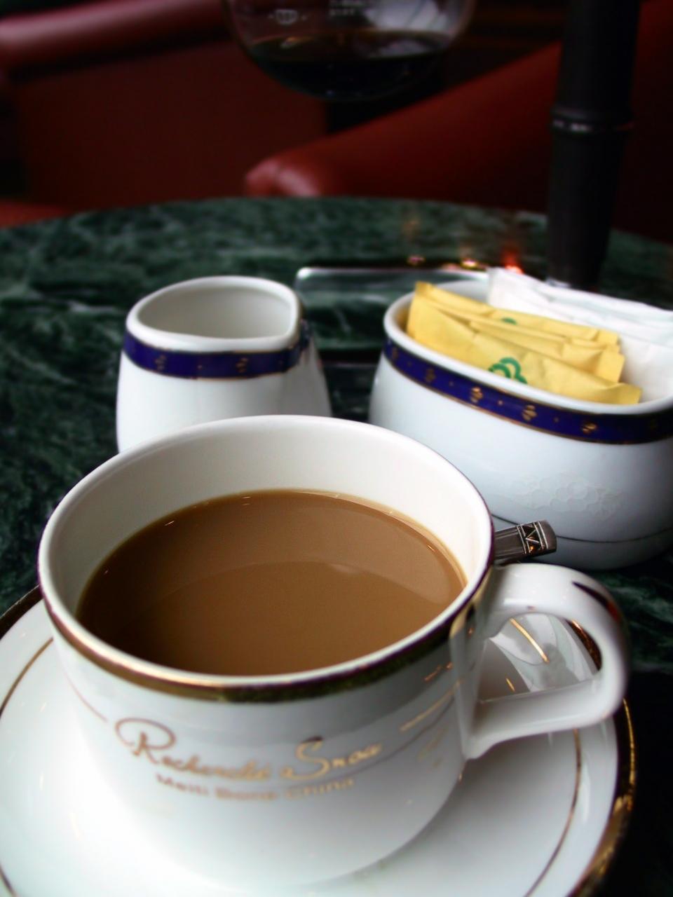 勿体無いけど、ミルクをどっさりと入れて、マイルドにして戴きました。