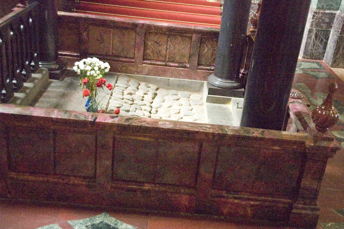 1881年にアレクサンドル2世がテロに遭った場所に建てられ、その場所が当時のままホゾンされています