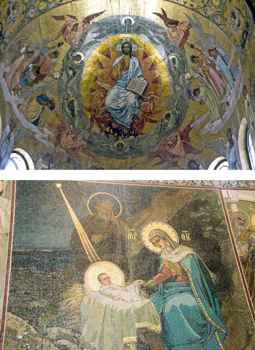 モザイクは天然の石ではなくガラスに顔料を混ぜた、スマルタというもので作られているそうです。