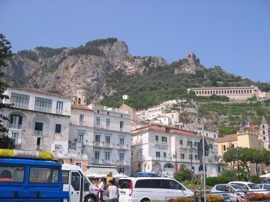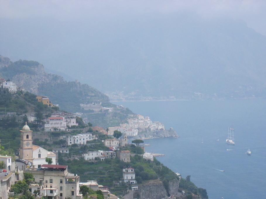 ソレントからの往路、やっと見えたアマルフィーの遠景。