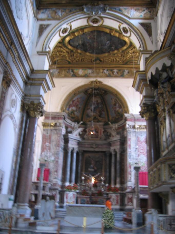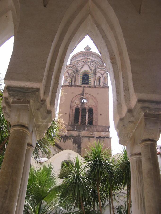 午後、ポンペイからソレントに戻り、ソレント半島の山道を登ると海岸線の絶景。海に沿った山肌を幾重にも回って東へ。アマルフィー近くでは、特に険しいヘア・ピン・カーブの道を下る。アマルフィは、9世紀頃より、造船と海洋技術を持ち、オリエントやビザンチン帝国、北アフリカとの貿易で栄えた。ドウモ広場前の通りの先、NHKのBS放送でも紹介されていた建物の下をくぐり、左の建物の階段を上った路地のレストランで、昼食。食後、10世紀に建てられたドウモ、アマルフィーの有力者の墓地跡に造られた天国の回廊などの見学後、ドウモ広場の有名菓子店で、買い物。その後散策組とアマルフィー海岸のボート観光組に分かれる。夕方、バスで、同じ道を戻り、ナポリへ。ナポリ手前で、一旦高速を出て、すぐの所にあるカメオ工房、ドナディオで、カメオの製作を見学、買い物。19時前にナポリのホテルに到着。20時半の夕食までの間、近くのショッピング街に案内して貰う。
