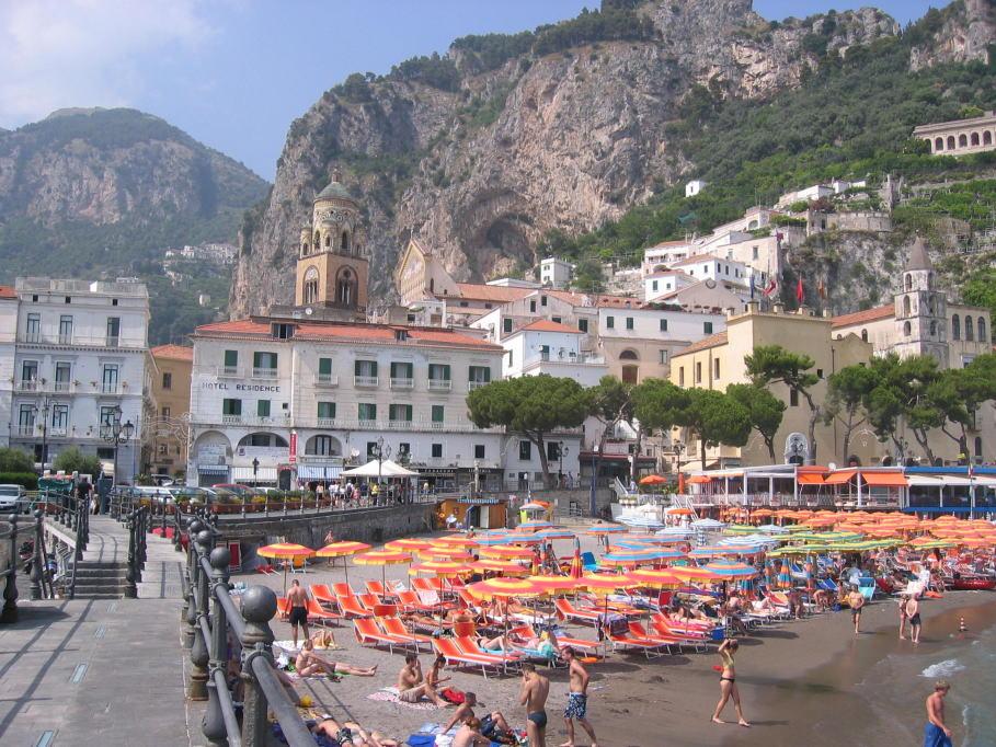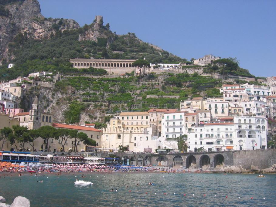 表紙は、防波堤の先から撮ったアマルフィの町。