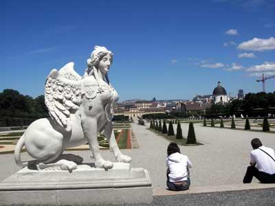 ベルベデーレ宮殿入り口の門。門の上のライオンが擬人化されていて奇妙。