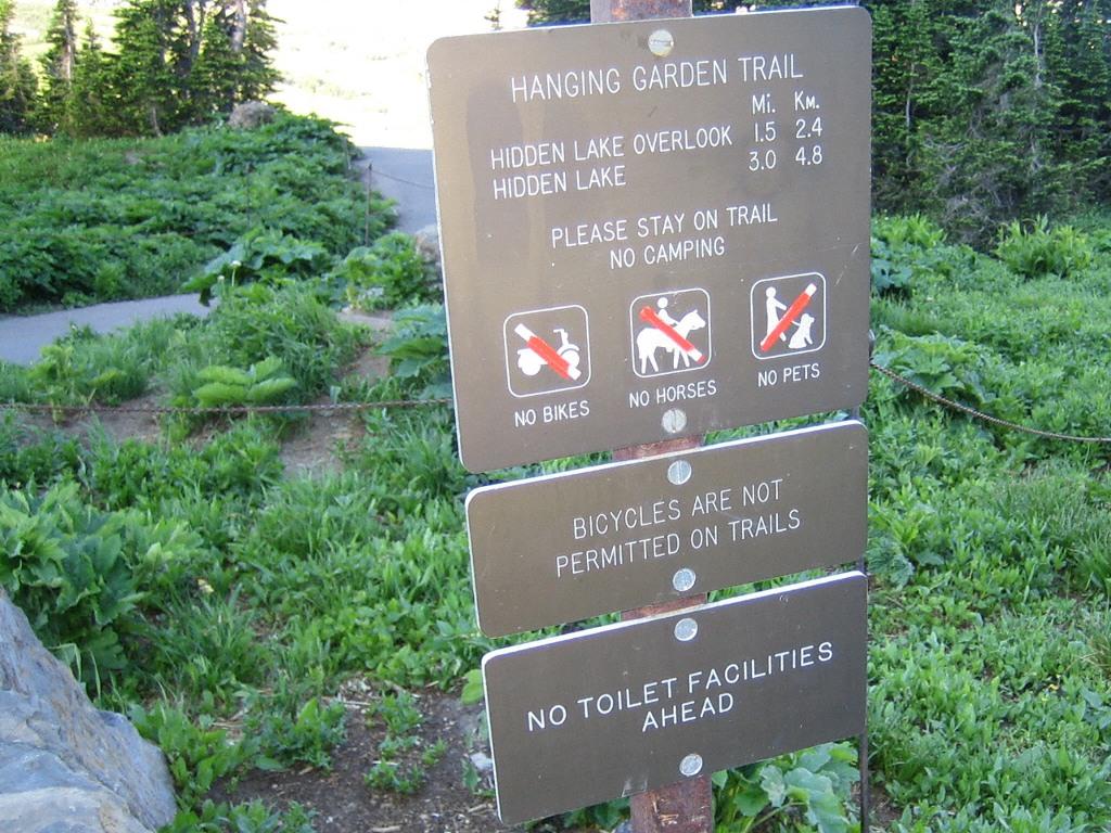 Hidden Lake Trail を歩いていると思っていたのですが、標識には Hanging Garden Trail と書いてあります。??? -