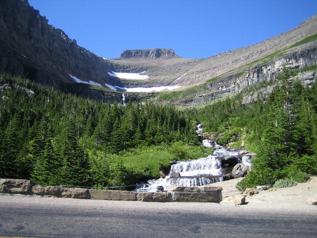Going To the Sun Road を走ると、こんな滝がたくさん目に付きます。