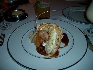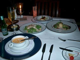 夕食はレストランを予約し、伊勢海老のスープ・シーザーサラダ・ホタテのグラタン・フォアグラの餃子香草いため・ロブスターを注文しました。オールインクルーシブで本当に良かった☆シャンパン(ベビーチャン)で乾杯!そしてデザートはなんとシェフが目の前で炎のパフォーマンスをしてくれるアイスが人気があって炎があがるたびにみんなで拍手しました。連鎖反応の様にみんな注文していていたるところで炎があがっていました(笑)