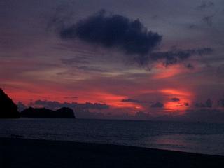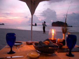 贅沢なディナーです。その時の夕日はとても綺麗で生涯忘れられない風景でした。まばたきするのがもったいないくらい素敵で、オレンジからピンクになり水色から青、そして黒。こんな色どうやったら作れるんだろう・・・。もし私がランカウイ島を訪れなかったらこんな美しい風景を見ることもなかったんだと思うと小さな世界から飛び出して美しい物をもっと見たい!自分の目で確かめたい!と改めて思ってしまいました。