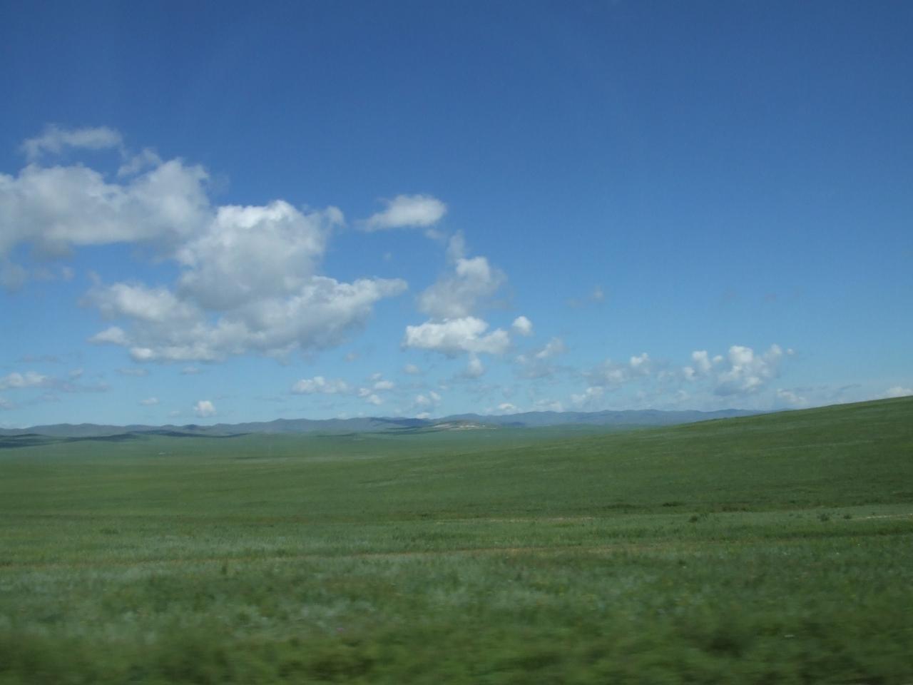 ウランバートルから30分もすると次第に建物が減りこんな草原に。