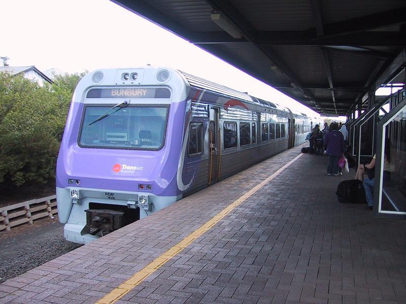 バンバリー駅。パースまではバスの便もあるが、そこそこの乗車率であった。
