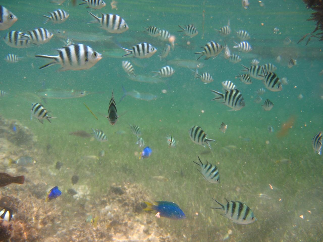 実は、前まで紹介したシュノーケリングポイントより、もっと綺麗で魚が豊富なポイントです。遊泳区域の一番左側のロープ沿いがポイントです。あまり、シュノーケリングしている人はいません。