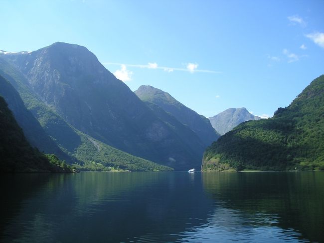 フロムをあとに、ソグネフィヨルド最奥のアウランフィヨルドへ出て行きます。 -