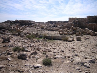 建物が地震で崩れてそのままに成っている状態だ。入り口は小さな看板に”ウム・アル・ラサス“と書いてあるだけ。ここが2004年に登録されたヨルダン3番目の世界遺産