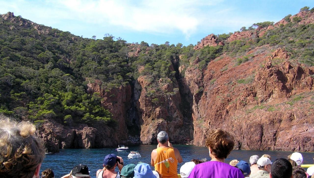 深いブルーの海と赤い岩のコントラストは日本では絶対見られない景色です。サンラファエルもコートダジュールの小さな港町です。ニースよりレストランのメニューが良心的で安心して歩ける町だとおもいます。ここを基点に様々なエクスカーションがあり、今回はエステルのクルーズを紹介します。