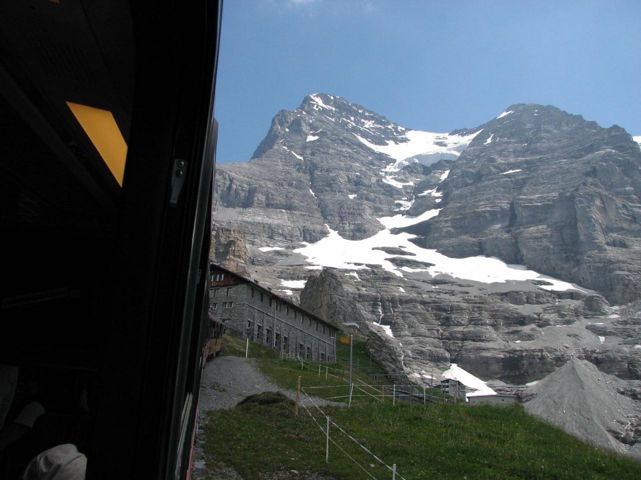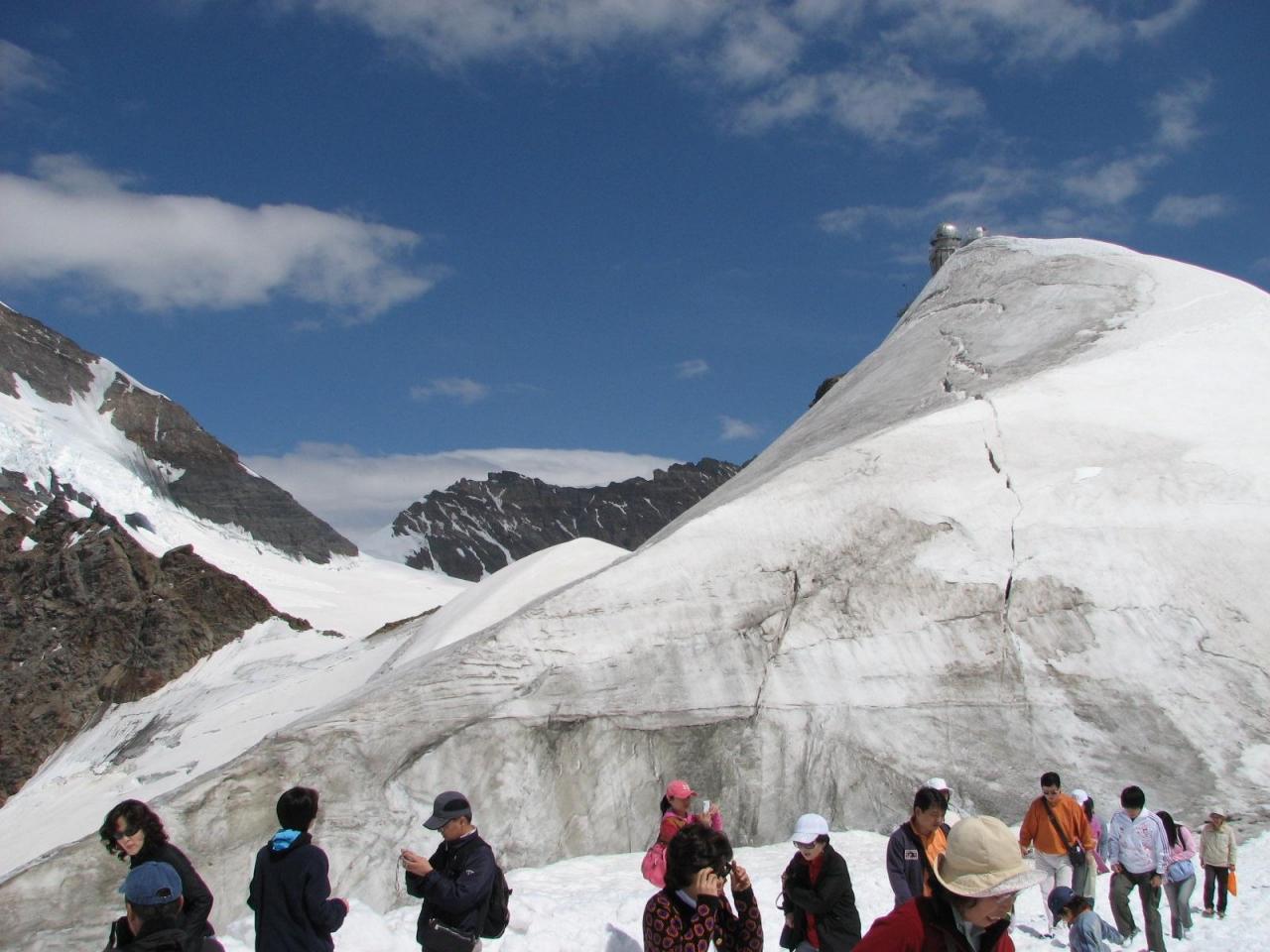 7月20日午後1時10分クライネシャイデックを後にしてユングフラウヨッホに向かった。途中、アイガーグレッチャー(2320m)、アイガーヴァント(2860m)、アイスメーア(3160m)を経由して約50分でトップ・オブ・ヨーロッパのユングフラウヨッホ(3454m)に到着した。 アイガーヴァントとアイスメーアでは約5分間くらいの展望休憩時間があり一時停車する。
