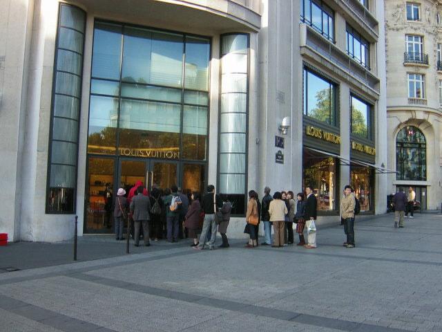 開店5分前のルイ・ヴィトン本店に並ぶ人々。