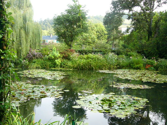 ここは画家のモネが愛し,長年に渡り住みかにしていたジベルニーの家の庭です。広いですね〜もともとこのような池があったわけではなく,小川を広げたそうです。