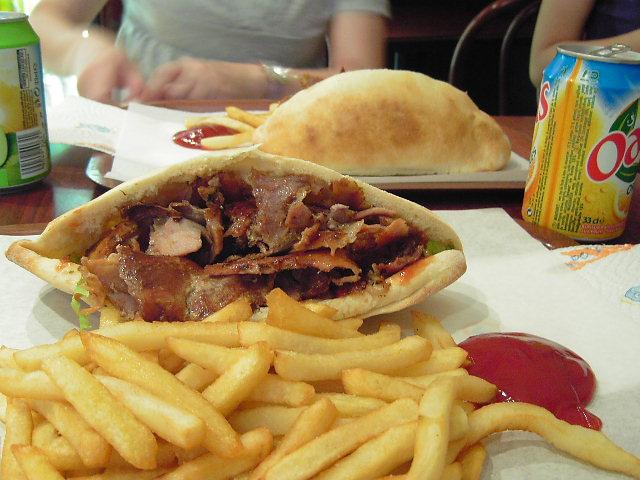 ケバブサンドにポテトフリッツがつき5.5ユーロ。