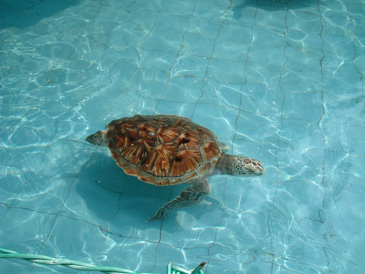 プールで泳ぐウミガメ。