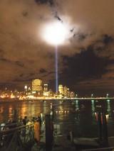 晩にはNY本願寺主催の灯篭流しを見に行った。ゆらゆらとカヤックに連れられて水平に浮かぶ灯篭の明かり。グランドゼロからまっすぐ垂直に空に向かって射す眩い光。まるで亡くなった人の魂がそのまま天国に導かれ登っていくかのような光景。多くの人がこの光景を見ながら思ったであろう。